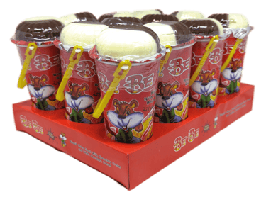 Crunchy biscuit sticks with two creamy dips—rich chocolate and smooth vanilla. Each cup adorned with a handle to invite you to dunk the crisp sticks into the sweet, velvety creams for a fun and delicious treat.