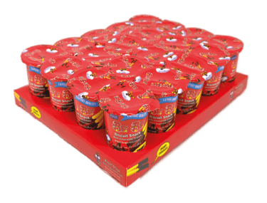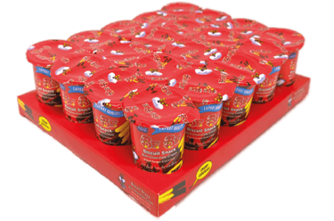 Mini snack pack of crisp biscuit sticks paired with a creamy, flavored chocolate dip in an irresistible size.