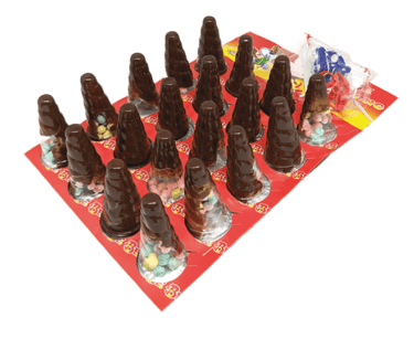 A playful snail-shaped container filled with creamy milk chocolate studded with crispy rice.