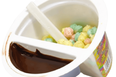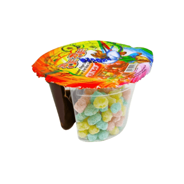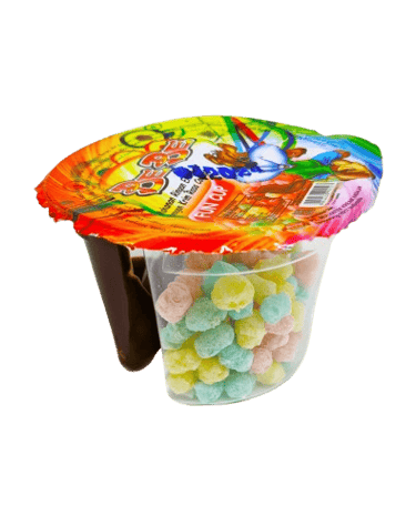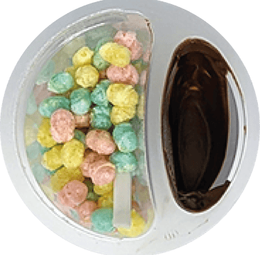 Colorful rice crispies paired with a creamy, chocolate-flavored dip. Each compartmentalized cup lets you dunk the crispy rice into the smooth, sweet cream for joyful fun