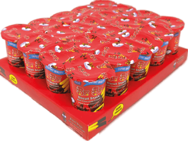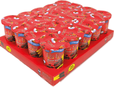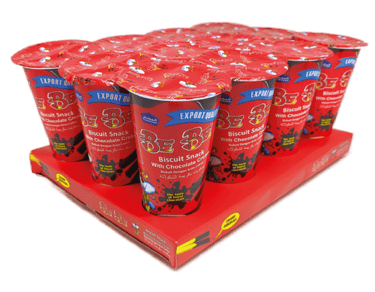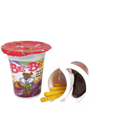 Snack pack of crisp biscuit sticks paired with a creamy, flavored chocolate dip. Each compartmentalized cup lets you dunk the crunchy sticks into the smooth, sweet cream for a playful treat.