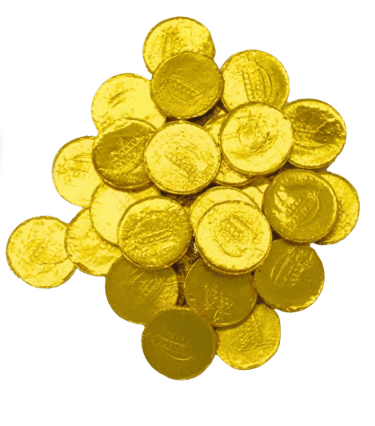 Foil-wrapped chocolate coins made from rich milk chocolate. Each coin offers creamy sweetness and a playful treasure-hunt charm.