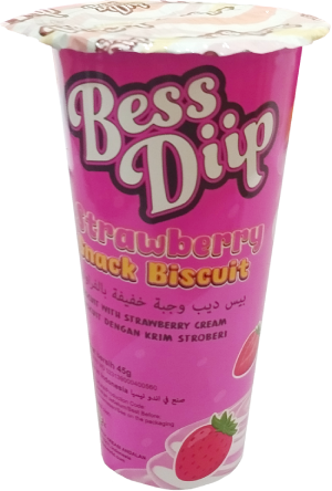 Snack pack of crisp biscuit sticks paired with a creamy, flavored strawberry dip. Each compartmentalized cup lets you dunk the crunchy sticks into the smooth, sweet cream for a playful treat.