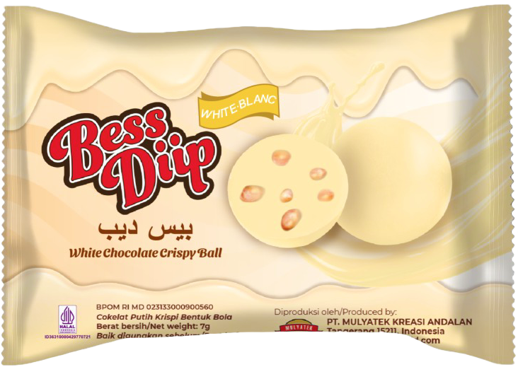 A bite-sized white chocolate ball with a crisp surprise inside. Smooth, creamy white chocolate meets crunch.