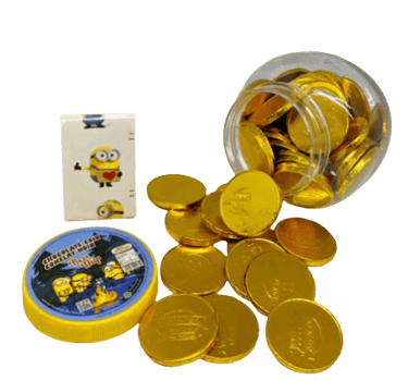 Minions-themed chocolate coins featuring everyone’s favorite mischievous characters. Inside, smooth and creamy milk chocolate makes each coin a delicious treasure that’s as fun as it is tasty.