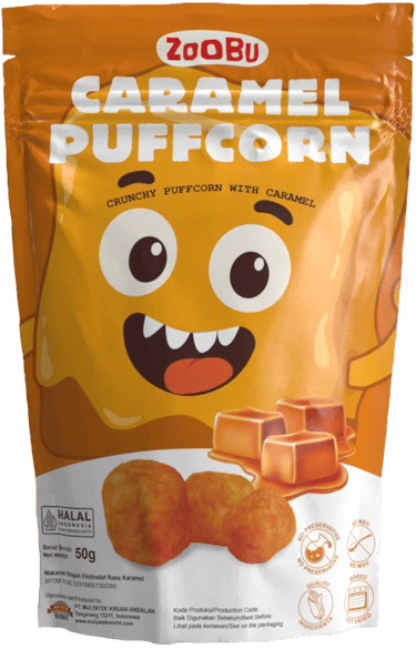 Airy puffcorn coated in a golden layer of buttery caramel. Like popcorn but crunchier. Each bite melts in your mouth with a perfect balance of crunch and rich caramel.